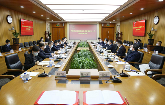 12月28日下午,中國節能與中國電力建設集團有限公司在北京簽署戰略合作框架協(xié)議。集團公司黨委書(shū)記、董事長(cháng)宋鑫,中國電建黨委書(shū)記、董事長(cháng)丁焰章出席儀式并見(jiàn)簽。集團公司黨委常委、副總經(jīng)理曹華斌,中國電建黨委常委、副總經(jīng)理王小軍代表雙方簽署協(xié)議。