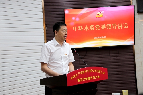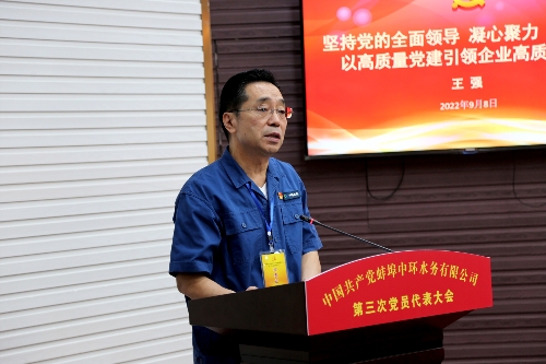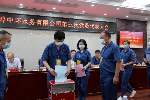 9月8日,蚌埠中環(huán)水務(wù)有限公司第三次黨員代表大會(huì )在蚌埠中環(huán)二樓會(huì )議室隆重召開(kāi)。來(lái)自蚌埠中環(huán)各基層黨支部的69名代表參加會(huì )議。中環(huán)保水務(wù)投資有限公司黨委副書(shū)記王倆、蚌埠投資集團黨委副書(shū)記龐延軼出席會(huì )議并講話(huà)。